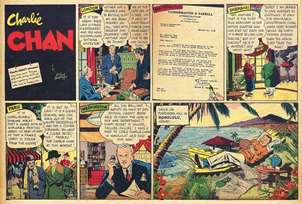 | Resumo | O detetive chinês-americano Charlie Chan foi criado por Earl Derr Biggers, em 1925 e baseado em parte em um verdadeiro detetive de Honolulu, Chang Apana. Embora Chan trabalhe para a polícia de Honolulu, ele resolve mistérios em todo o mundo. Em 24 de outubro de 1938, o McNaught Syndicate lançou uma história em quadrinhos de Charlie Chan. Notavelmente desenhada por Alfred Andriola. | ||